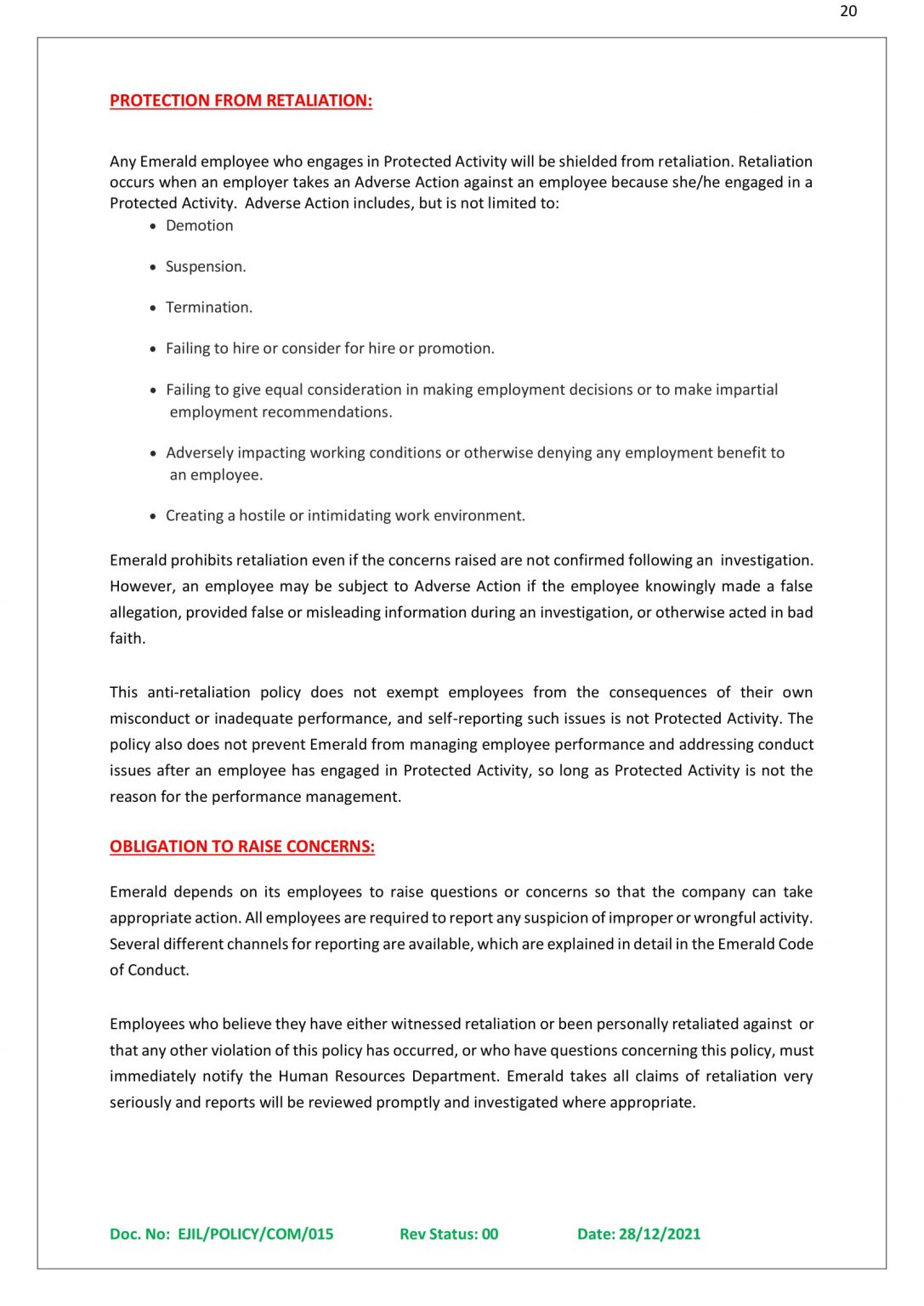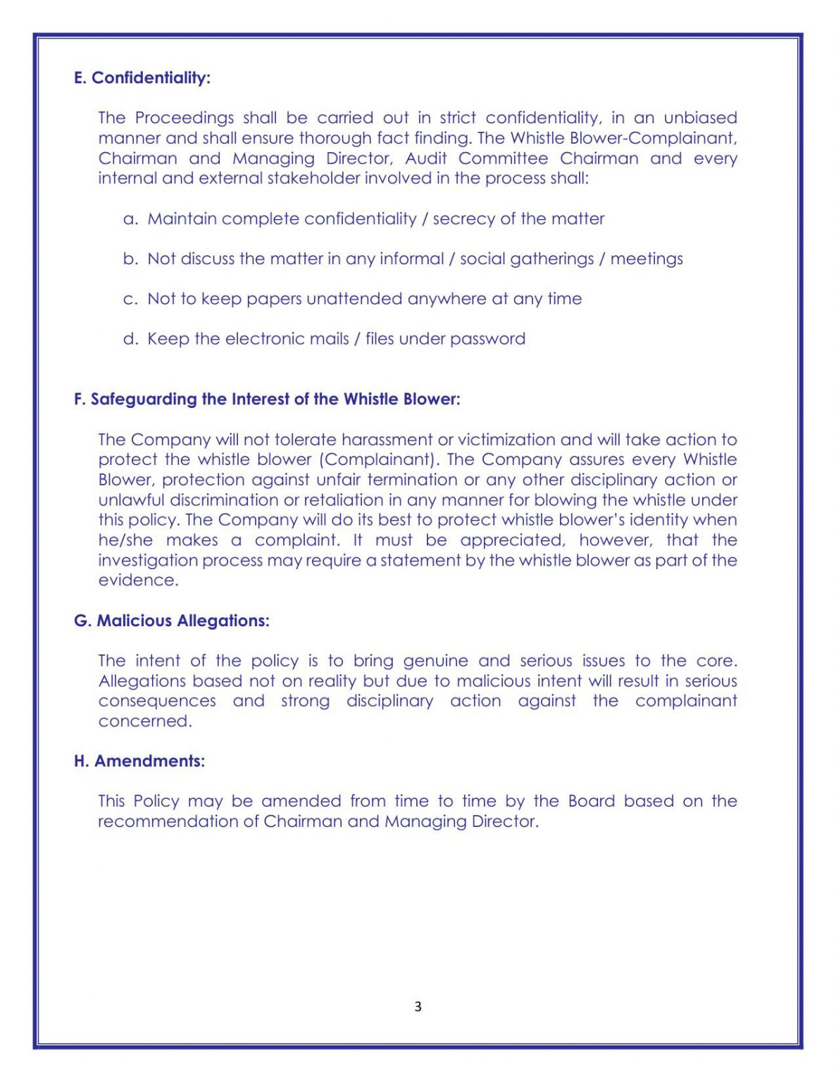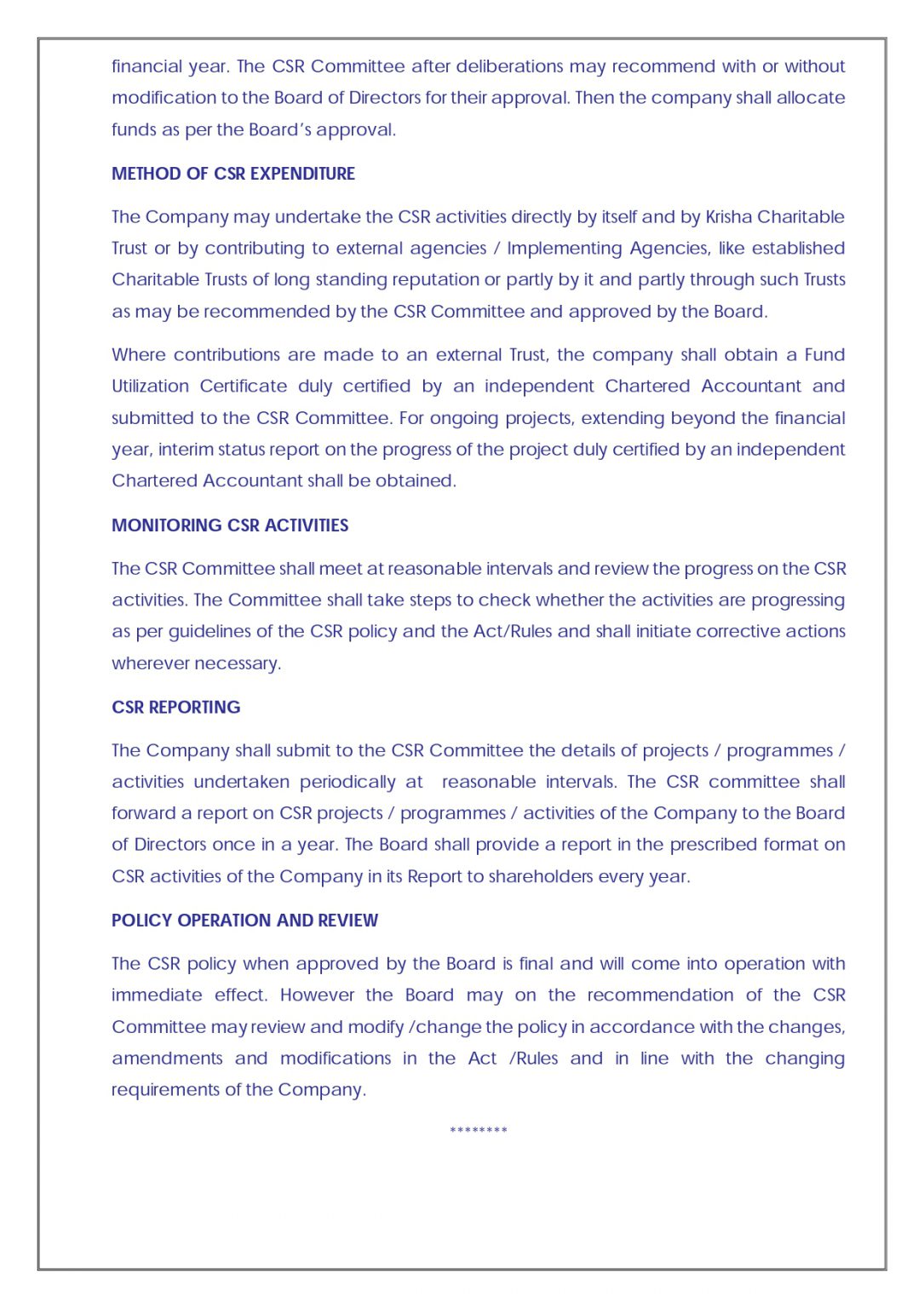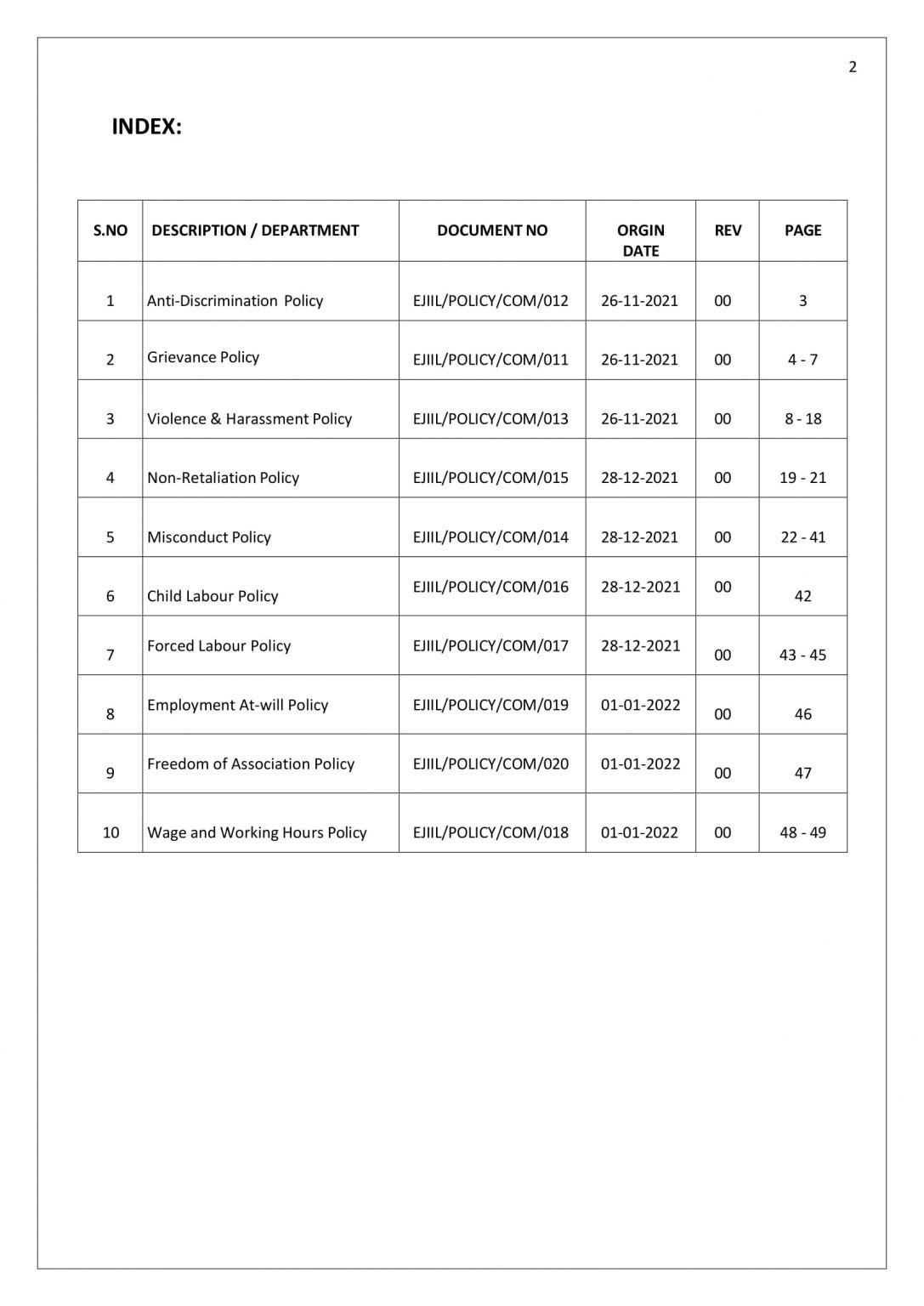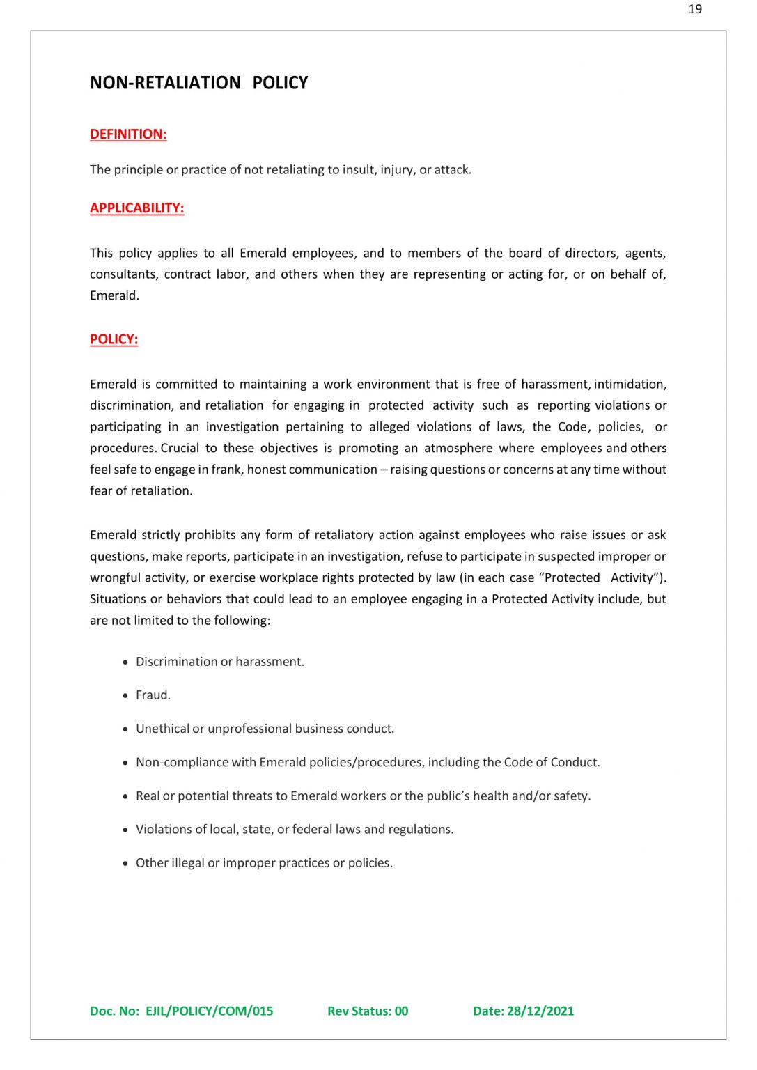 Our Policies
