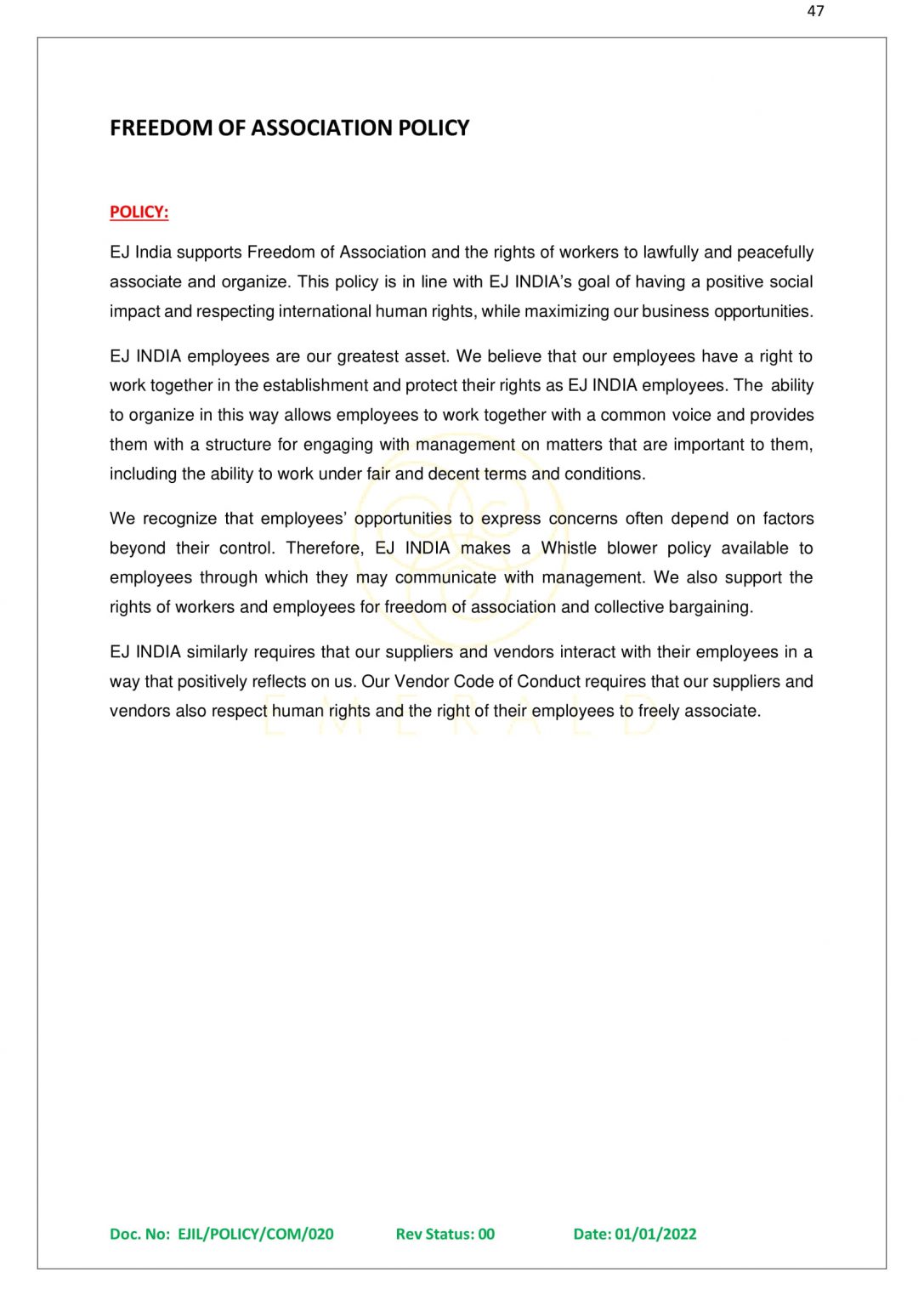 “ With excellence Emerald’s luminary, Emerald crown of excellence is studded with numerous gems of certifications ranging from the highest standards like ISO and much more ”